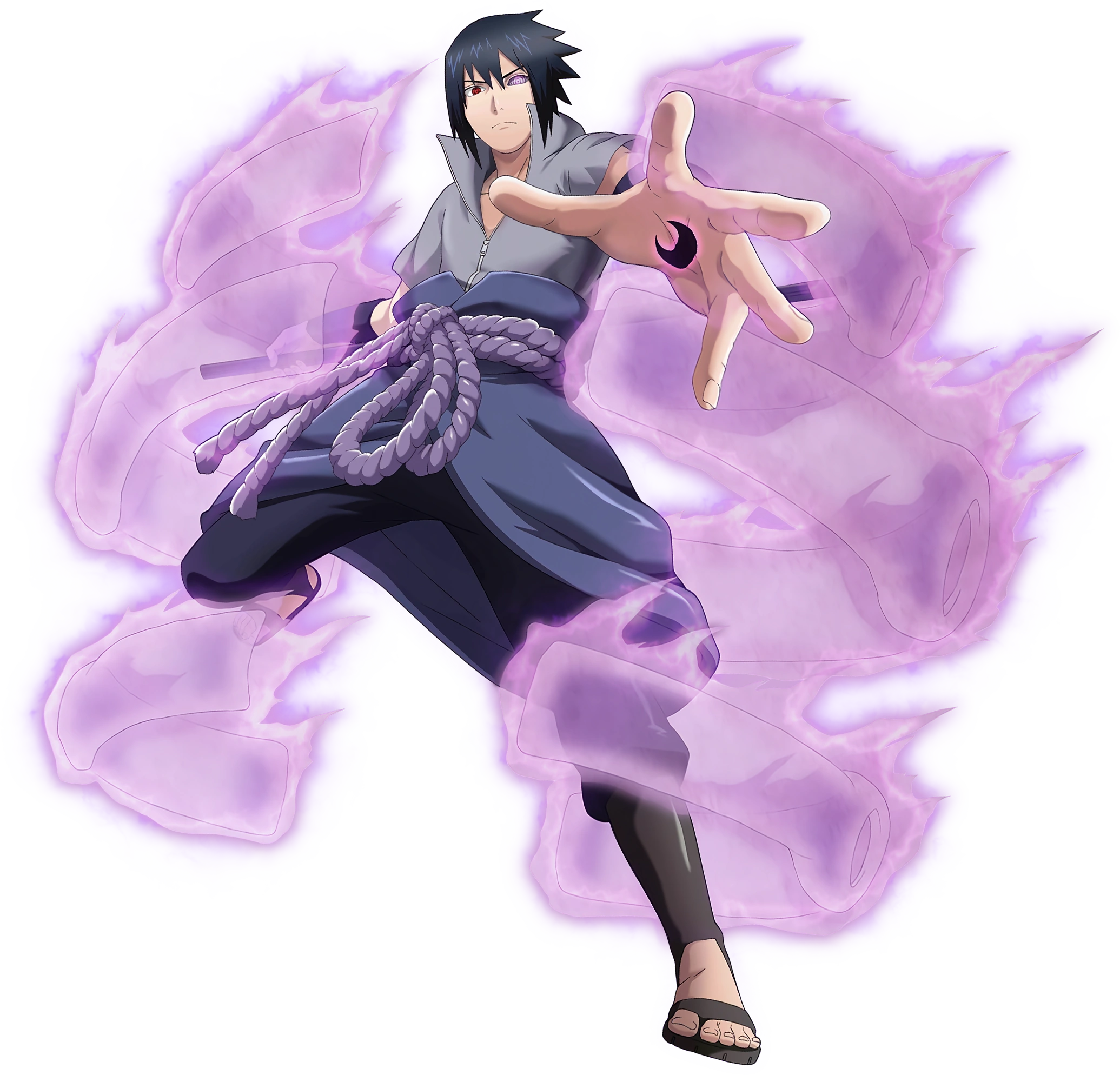 Sasuke Uchiha nació como el segundo hijo del jefe del clan Uchiha, con su hermano mayor Itachi siendo su gran ídolo, cuyos hitos fueron imposibles de superar para Sasuke a pesar de haber alcanzado siempre las mejores calificaciones durante la Academia Ninja. Sin embargo, una noche Sasuke regresó a casa después del entrenamiento solo para descubrir que la totalidad de su clan había sido masacrado. Horrorizado, Sasuke corrió a casa, solo para presenciar a su hermano parado sobre los cuerpos de sus padres. Sasuke inmediatamente buscó la ayuda de su hermano, pero Itachi lo atormentó con visiones de la masacre. Lleno de miedo, Sasuke trató de huir, pero Itachi lo arrinconó rápidamente, quien declaró que no valía la pena matar a Sasuke y que solo al alcanzar su propio Mangekyō Sharingan, Itachi lo consideraría un desafío. Antes de irse, Itachi le dio a Sasuke una última instrucción: odiarlo, desear venganza y obtener poder de eso.